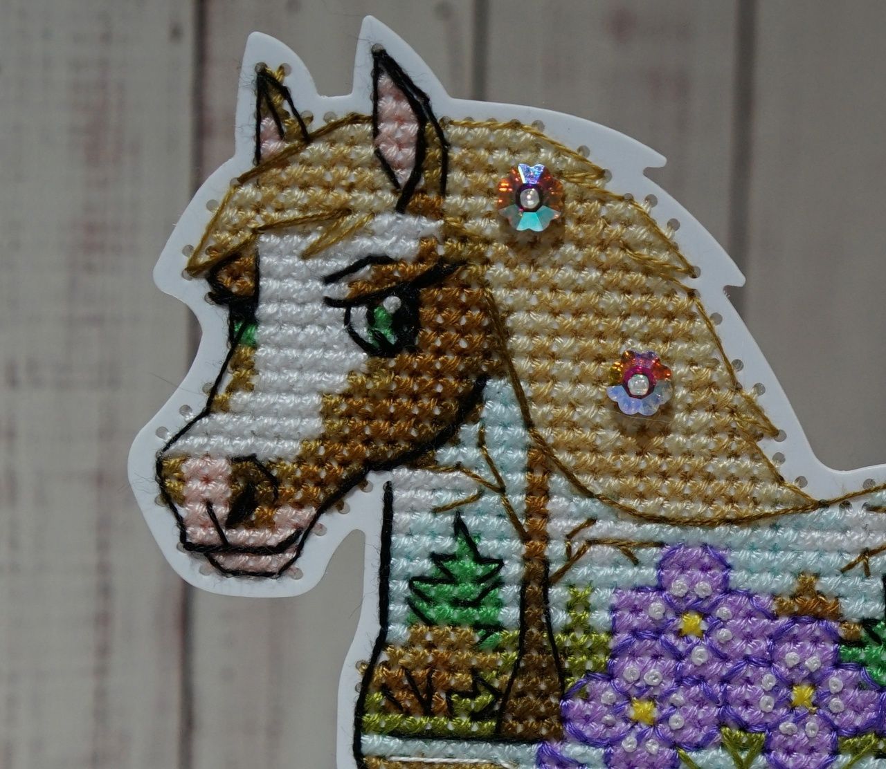 Размер 51х55 крестиков, 17 цветов (2 бленда), ДМС.