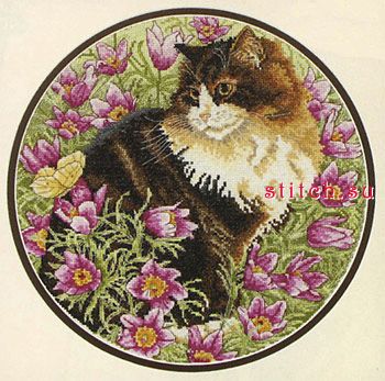 Красотка в цветах (Simpkin in Pasque Flowers), 30,5х30,5, аида 14, счетный крест