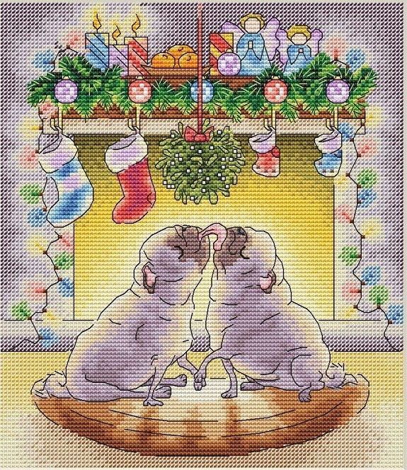 "Поцелуй под омелой". Размер 104х120 крестиков, 42 цвета ДМС (10 блендов).