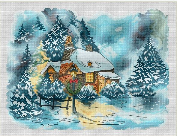"Домик из Нарнии". Размер 160х120 крестиков, 40 цветов ДМС (10 блендов).