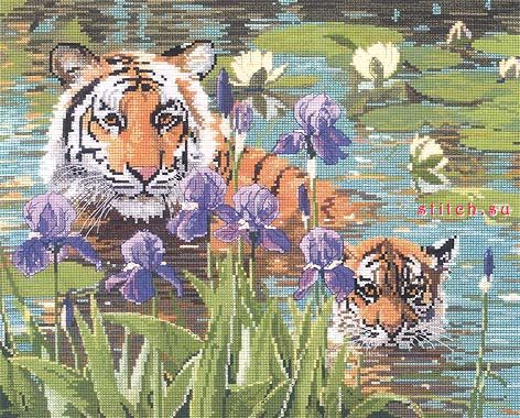 Мама и малыш (Мать и дитя, Тигры, Mom and Baby), 35,6х27,9, аида 14, счетный крест
