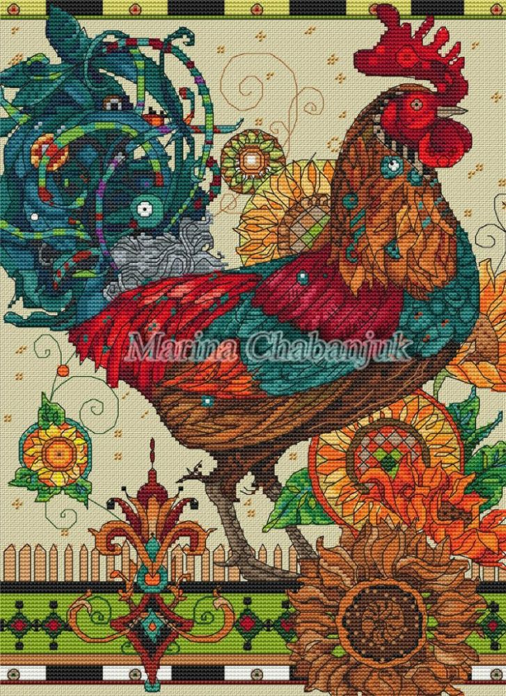 Петух. Размер 133х183 крестика, 66 цветов +10 блендов (ДМС)