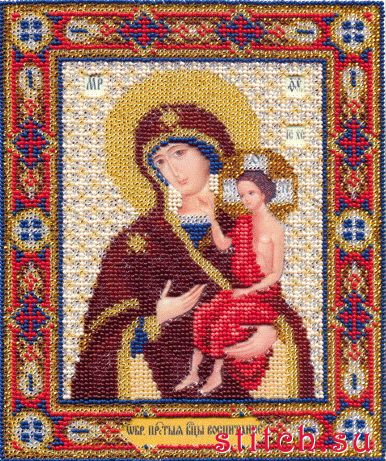 Икона Божьей Матери Воспитание, 18,2х21,7, 11 цветов, вышивка бисером