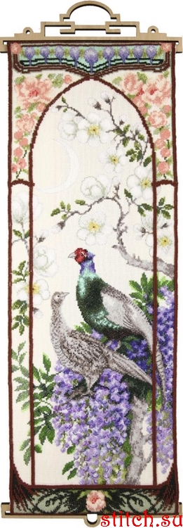 Фазаны в глицинии, 22,5х63,5, аида 14, счетный крест