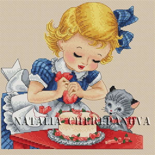 "Маленькая хозяюшка". Размер 120х124 крестиков, 30 цветов +5 блендов (ДМС)