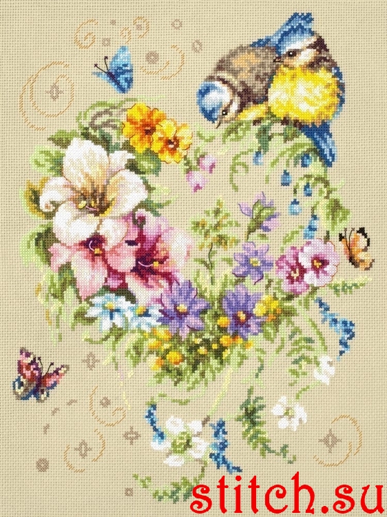 Канва , которая идет конкретно в моем наборе, отличается по цвету от остальных в серии (у меня все 4 набора). Итого три набора на одинаковой песочно-бежевой канве, а этот набор на какой-то светло-серо-бежевой.