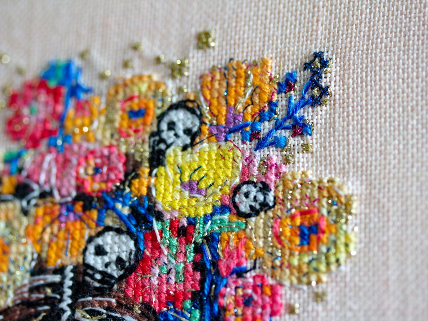 Размер 74х107 крестиков, 24 цвета DMC, 6 цветов Kreinik, 2 бленда.