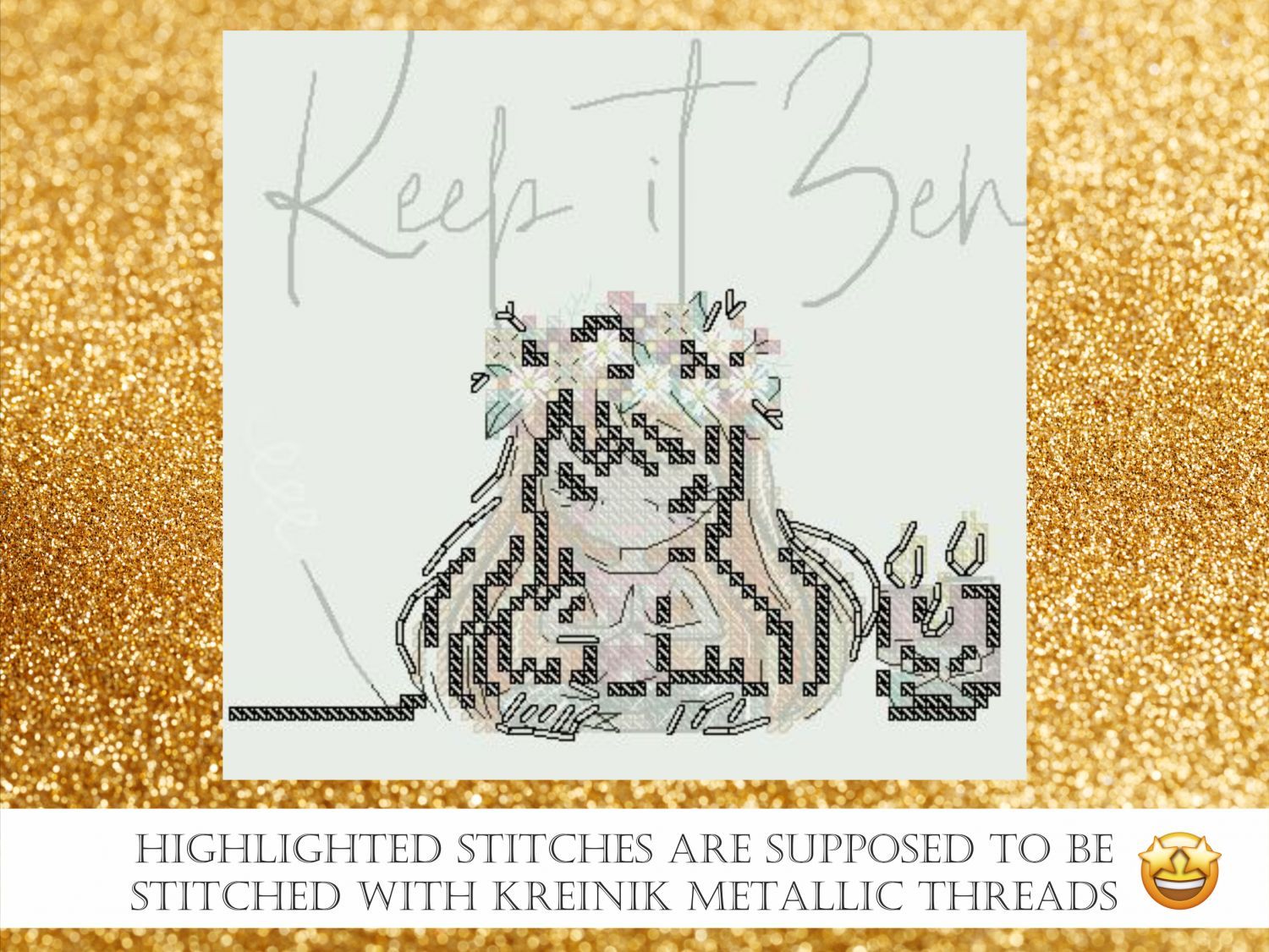 Размер 66х59 крестиков, 17 цветов DMC, 1 цвет Kreinik.