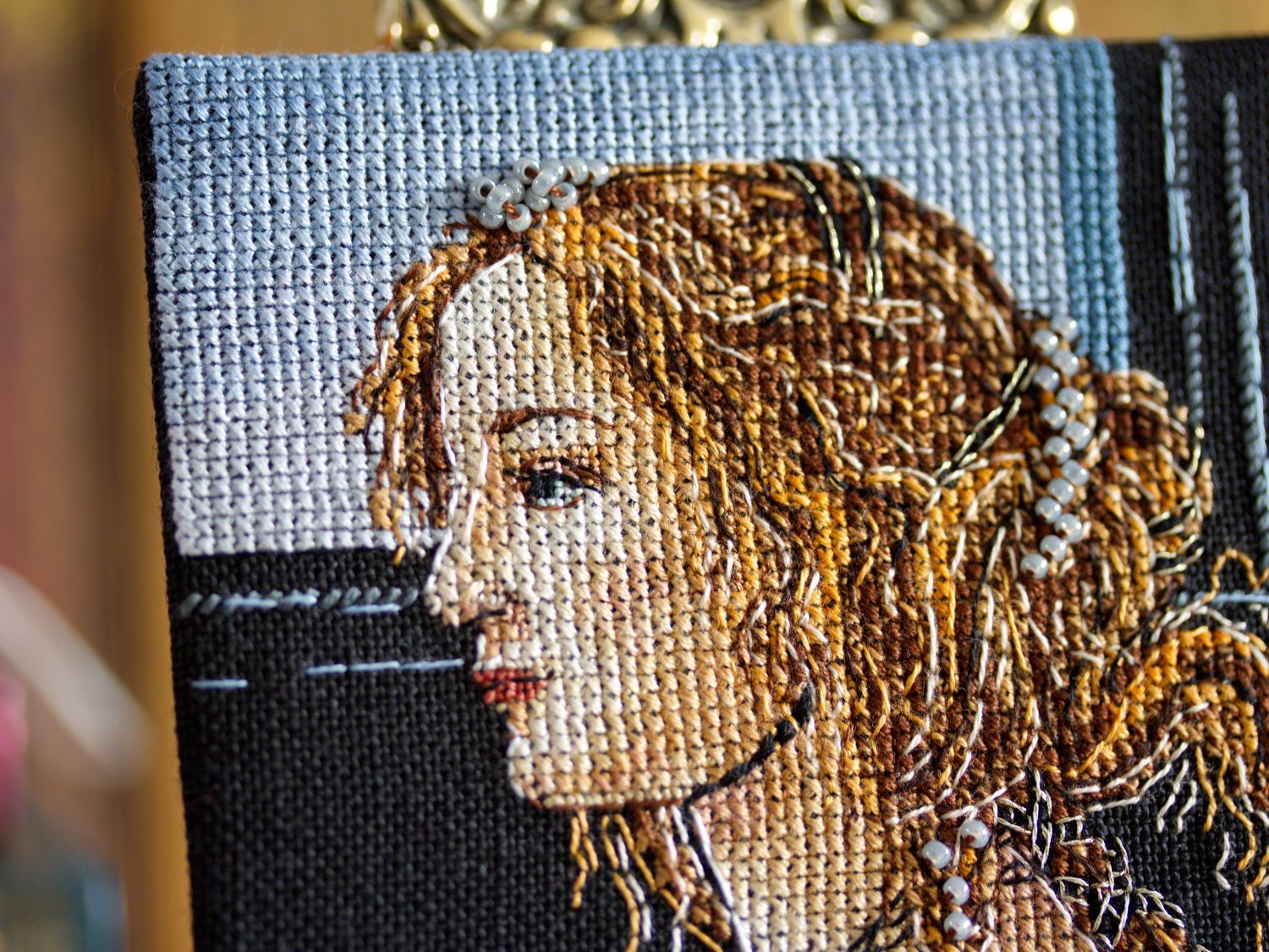 Размер 64х86 крестиков, 27 цветов DMC, 13 блендов, 1 DMC Light Effects, 1 цвет бисера Mill Hill.