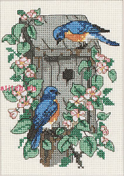 Птицы счастья (Bluebirds of Happiness), 13х18, аида 14, счетный крест