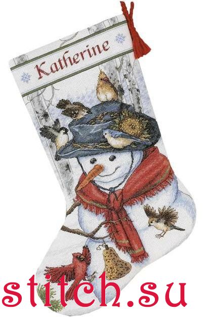 Рождественский чулок - Друзья снеговика, длина 41, аида 14, счетный крест
