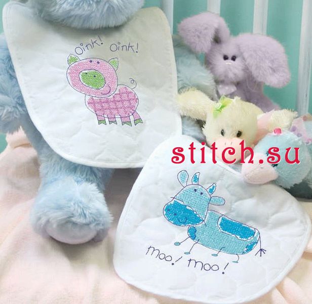 Детские нагрудники - Веселые животные, 2 шт. по 23х36, печатный крест