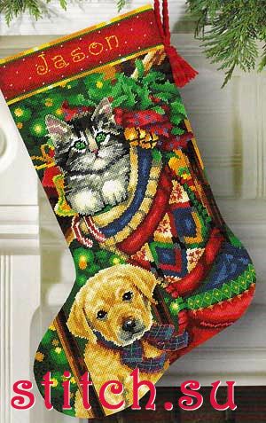 Рождественский чулок - Любимые питомцы, 41 см, страмин 14, гобелен