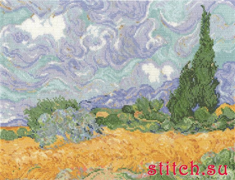 Van Gogh - A Wheatfield with Cypresses, 29х23, аида 16, счетный крест