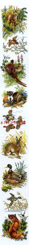Панель-животные (Животные и птицы), 16х125, лен, счетный крест