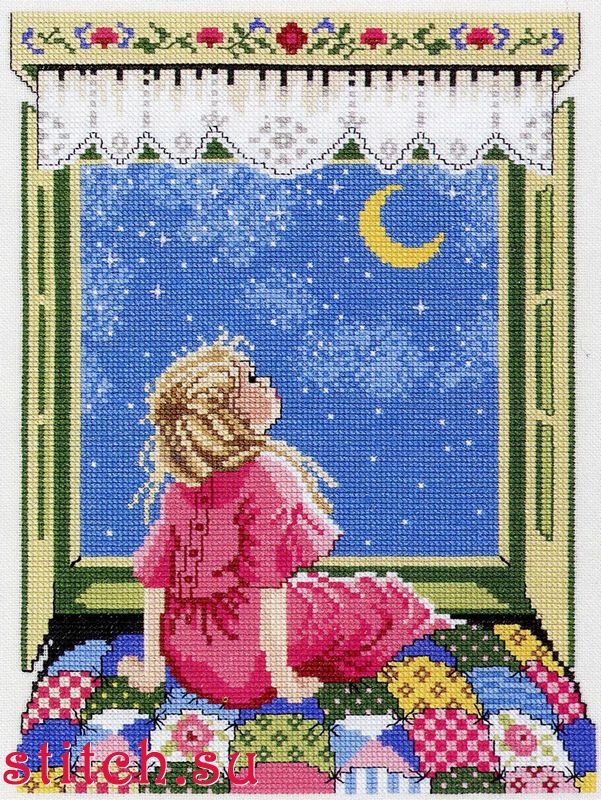 Девочка, смотрящая на звезды (Girl looking for stars), 28х35, Evenweave 26, счетный крест