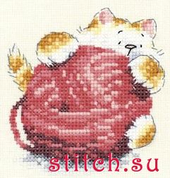 Рыжик с красным клубком (Knit One), 7,5х7,5, канва 28, счетный крест