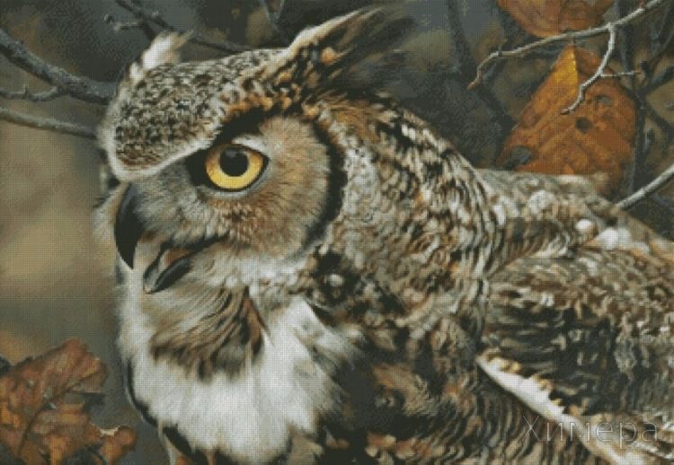 Клёкот филина. Размер 350х240 крестиков, 37 цветов+ 7 блендов
