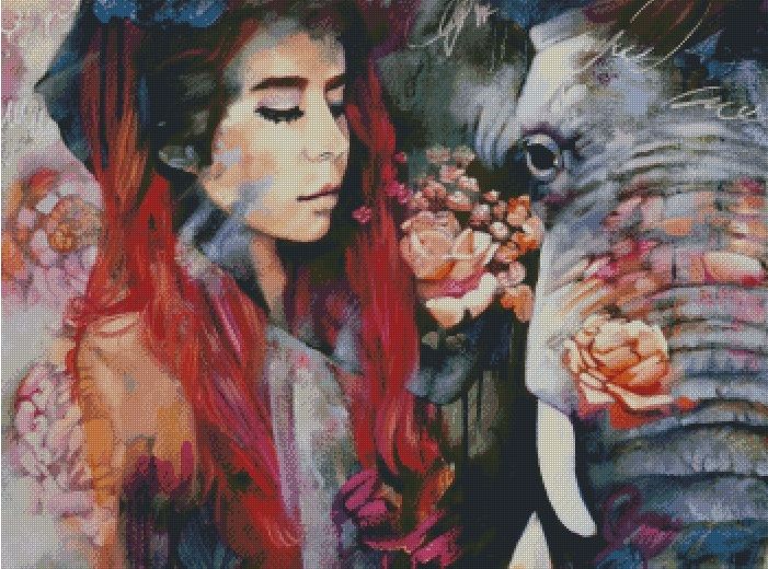 Погонщица слонов. Размер 350х260 крестиков, 60 цветов+ 9 блендов