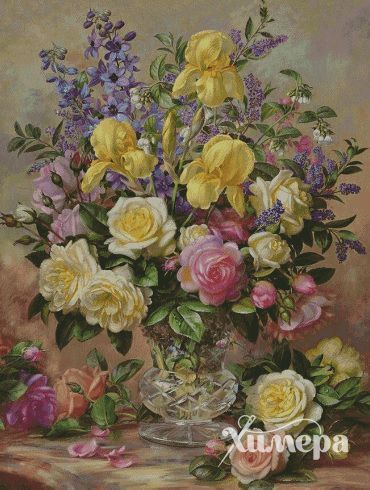 "Жёлтые ирисы и розы".