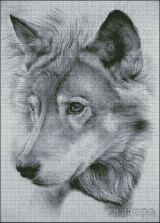 Волк. Размер 250х349 крестиков, 17 цветов с блендами.