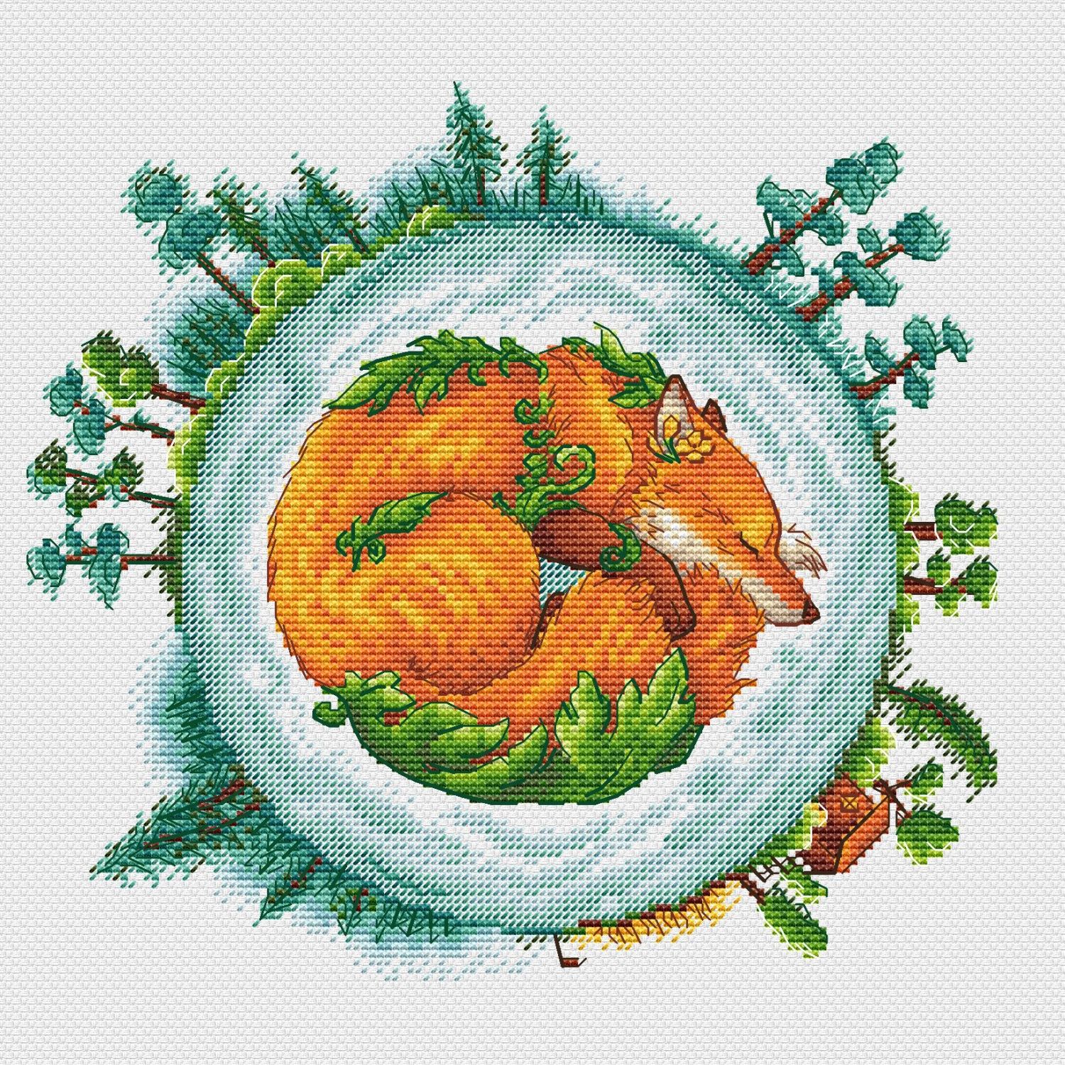 Размер 125х116 крестиков, 23 цвета + 4 бленда, DMC.