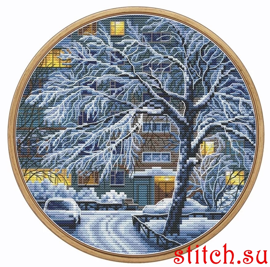 Зима. Вечер.У подъезда, 19х19, аида 14, счетный крест