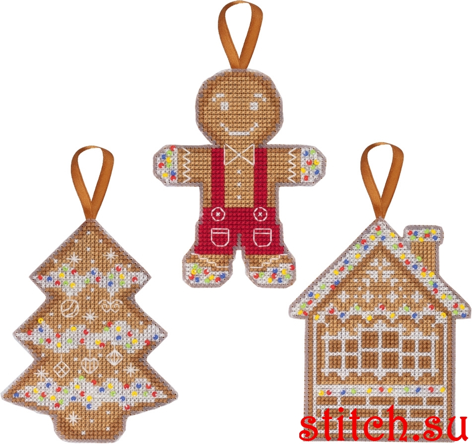 Новогодние игрушки. Пряники, 3 по 8х10, пластиковая канва, счетный крест