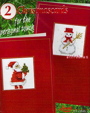 Новогодняя открытка Дед Мороз и снеговик, 11,5х11,5, счетный крест