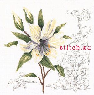 Белая лилия и орнамент (White Lily and Ornament), 29х29, лен 30, счетный крест