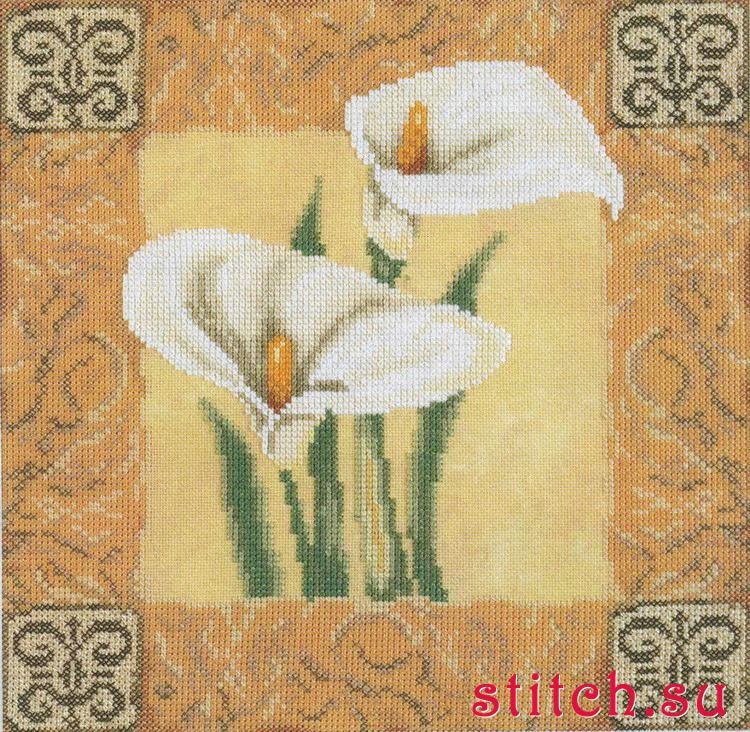 Каллы в классике (Lily calla in classic surround), 25х25, линда 27, счетный крест