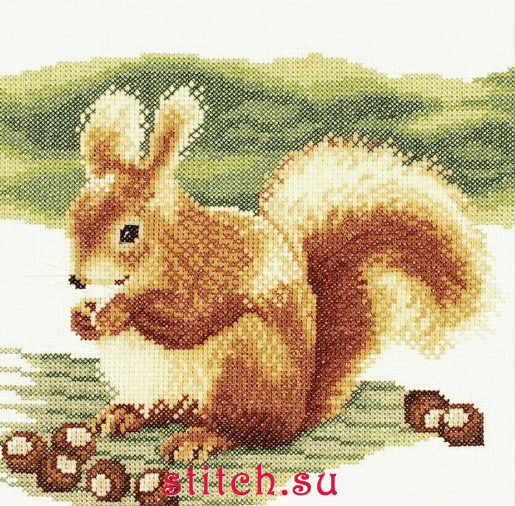 Nibbling Squirrel, 20х20, аида 14 или ткань 27, счетный крест