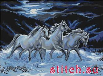 Пейзаж с тремя лошадьми, 39х28, аида 18, 25 цветов, счетный крест