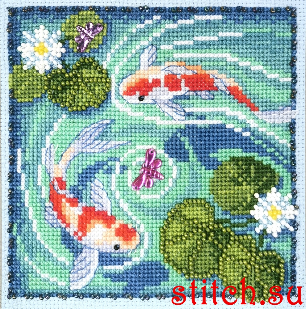 Рыбки, 13х13, аида 14, счетный крест и вышивка бисером