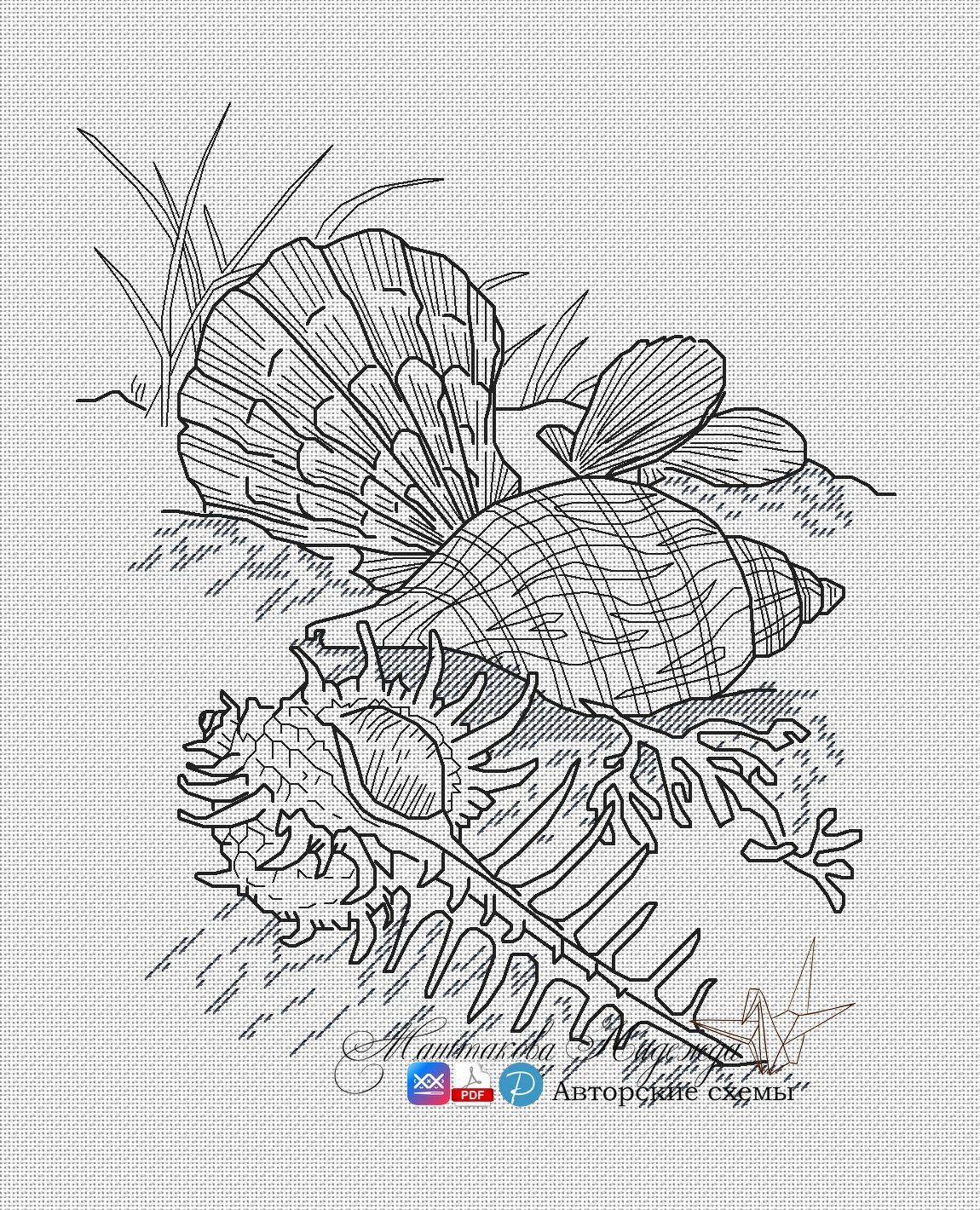 Ракушки. Размер 96х118 крестиков, 2 цвета, ДМС, ПНК и Гамма.