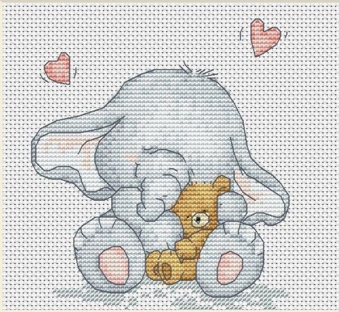 Слоник с медвежонком. Размер 61 х 69 крестиков, 12 цветов - 2 блэнда