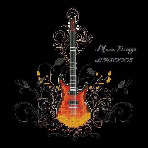 Гитара. Размер 81х90 крестиков, 11 цветов, в т.ч. 2 металика, 4 бленда.