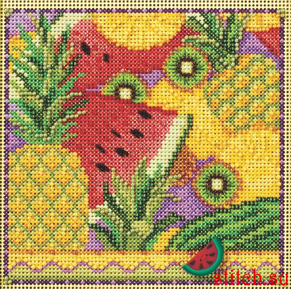 Summer Fruit, 13,3х13,3, перфорированная канва, счетный крест и вышивка бисером