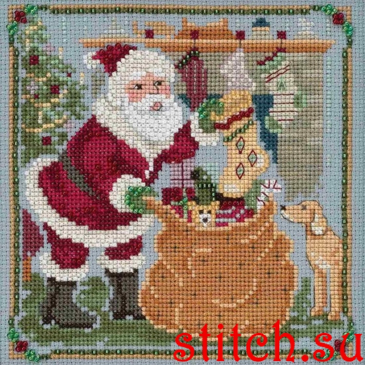 Jolly Old Elf, 13,3х13,3, аида 16, счетный крест и вышивка бисером