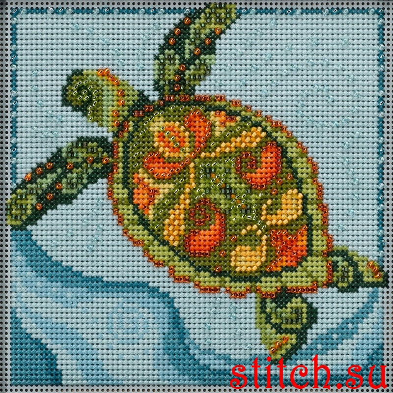 Turtle, 13х13, перфорированная канва, счетный крест и вышивка бисером
