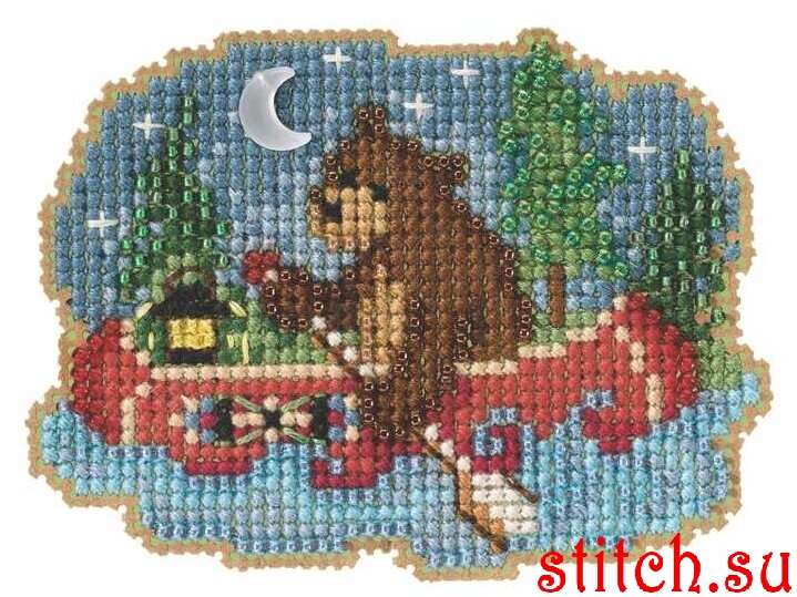 Bear Canoe, 7,6х7,6, перфорированная канва, счетный крест и вышивка бисером