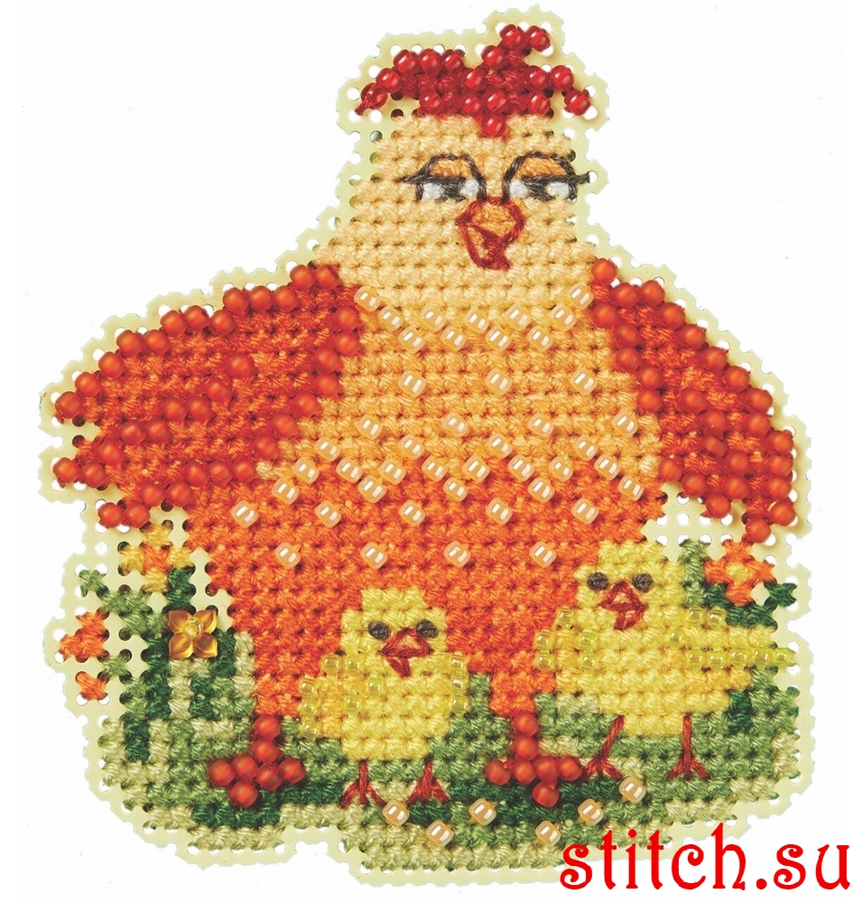 Mama Hen, 6х7, перфорированная канва, счетный крест и вышивка бисером
