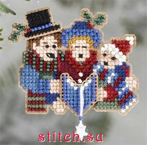 Carolers, 6,35х6,35, перфорированная бумага, счетный крест и вышивка бисером