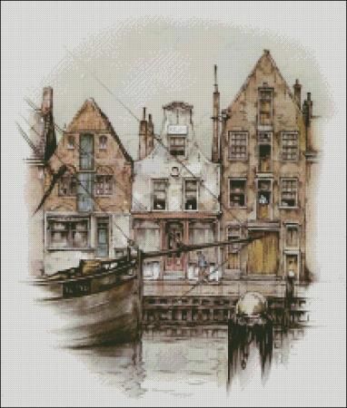 Домики Голландии. Размер 210х247 крестиков, 36 цветов ДМС