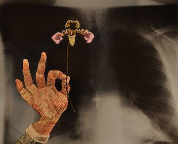 Известный американский художник Мэтью Кокс (Филадельфия, США) убежден в том, что многие произведения искусства - это материальное воплощение душевной потребности изменить этот мир, объяснить необъяснимое, дать человеку шанс понять его. Основой для его творчества служат обычные рентгеновские снимки. Слоем изысканной французской глади он покрывает лучевые и берцовые кости, черепа, скрывает переломы.