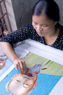 Сегодня деревня вышивальщиц - это более 100 частных предприятий. Около 90 процентов семей имеют, по крайней мере, одного человека, занятого в торговле вышивками. Мастерицы не скрывают, что это на самом деле тяжелая работа, от которой болят глаза и ломит спину. Очень популярный заказ - портрет национального лидера Вьетнама Хо Ши Мина. Такая работа занимает от 3 до 5 месяцев.