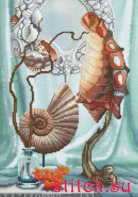 Сокровища моря, 24х34, аида 14, счетный крест и вышивка бисером