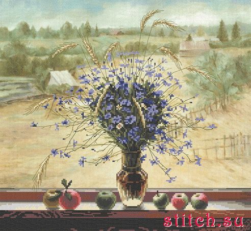 На подоконнике, 30х28, аида 16, частичная вышивка