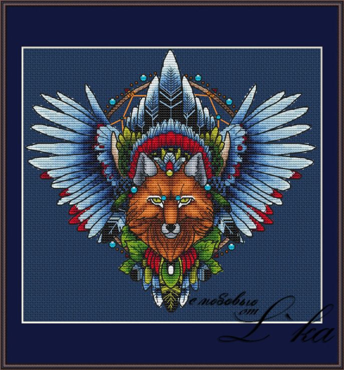 Лис-1. Серия "Ловцы снов". Размер 123х112 крестиков. Количество цветов - 38 + 7 бленда. Мулине ДМС.