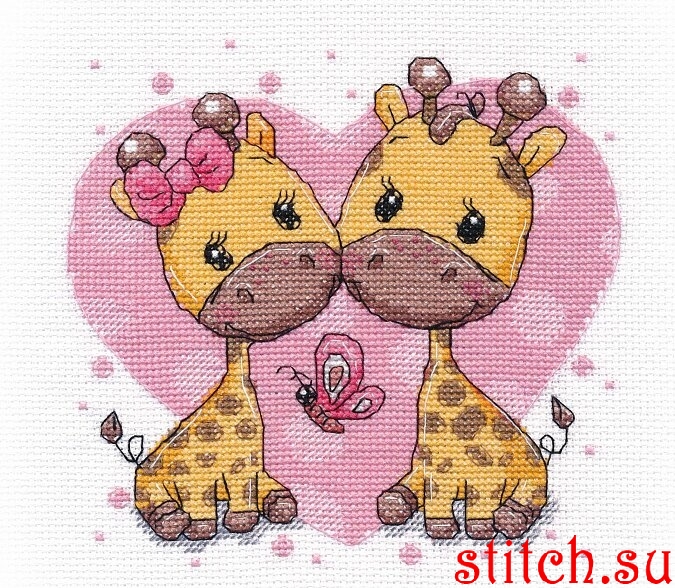 Влюбленные жирафики, 15х15, аида 14, счетный крест